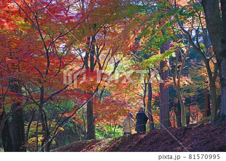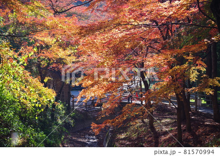 三重県四日市市 秋の宮妻峡の水沢もみじ谷の紅葉を楽しんで散策する人々
