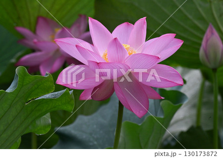 蓮の花と蕾のある風景