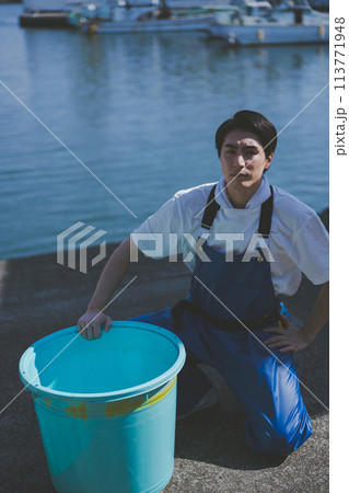 漁港で働く若い漁師さん