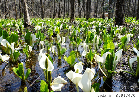 湿地 水芭蕉 白い花
