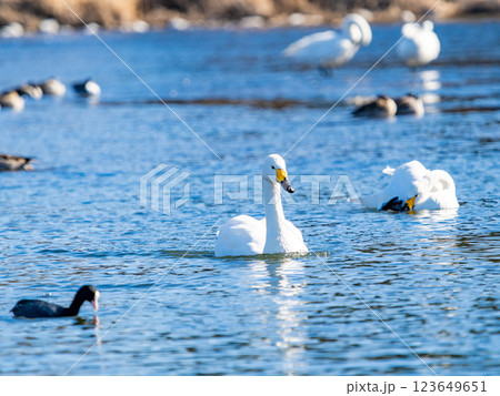首都圏の荒川で越冬する優雅で美しい白鳥の群れ