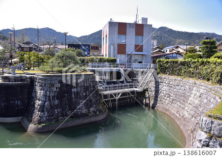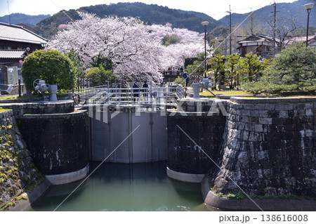 大津・琵琶湖第一疎水の大津閘門と桜風景