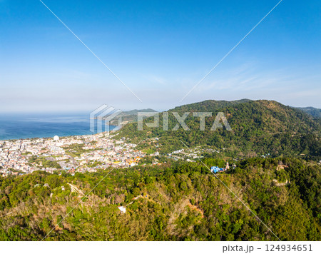 Aerial view of beautiful sky over sea at Patong bay Phuket city Thailand