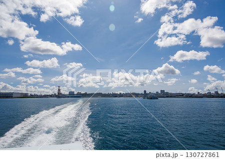 出港した船から見る那覇泊港の風景。泊大橋やとまりんが見える。沖縄県那覇市那覇泊港-2025/6/26