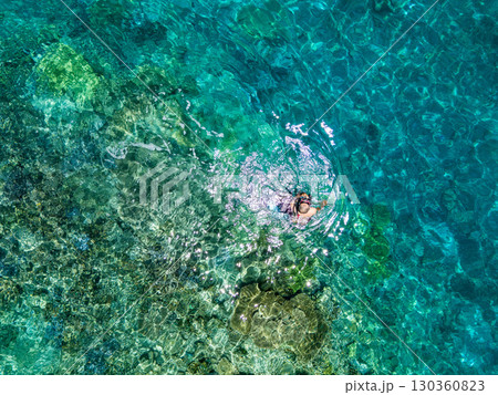 雨のヒリゾ浜の半水面撮影。水面を泳ぐスキンダイバーもいる。ヒリゾ浜中木南伊豆町伊豆半島静岡県2024