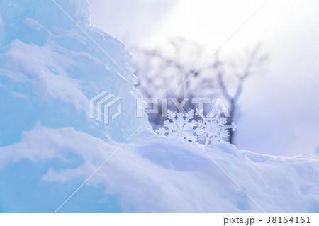 冬イメージ 氷のオブジェと雪の結晶(冬の北海道、支笏湖氷濤まつり)