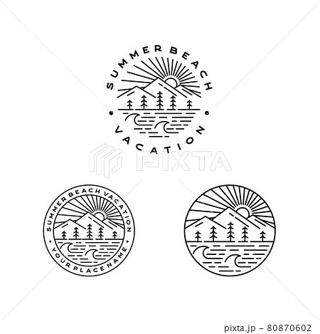 Mountain, Sea, Waves, pine tree and Sun for Hipster Adventure Travel logo design set