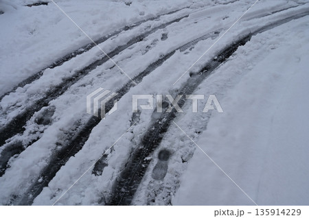 雪道のスタットレスタイヤの踏み後