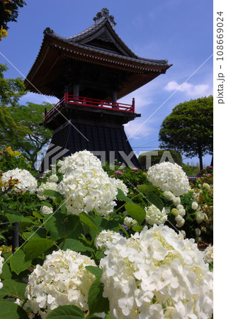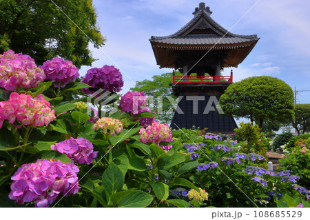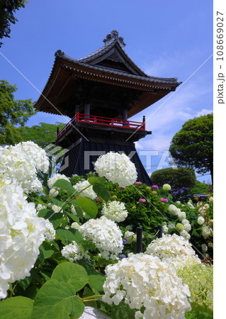能護寺 あじさいと鐘 楼埼玉県熊谷市