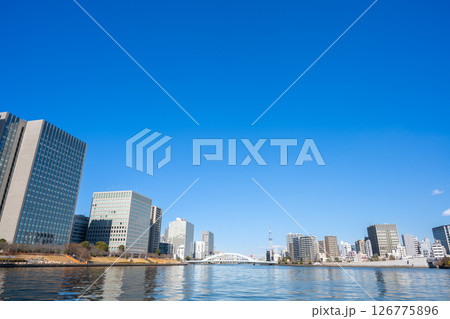 「東京都」隅田川にかかる中央大橋から見る風景 中央区