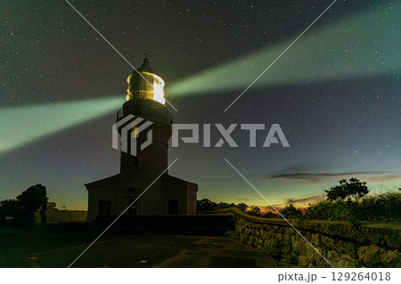 灯光夜空を舞う 屋久島灯台 屋久島国立公園(秋