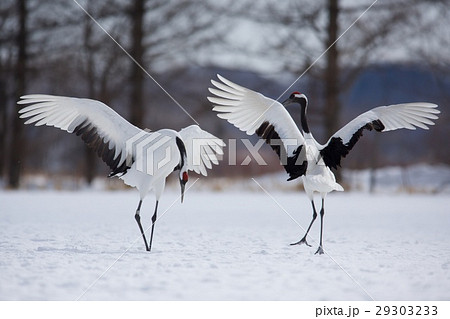タンチョウ鶴の求愛ダンス-道東の冬景色