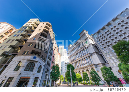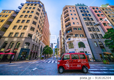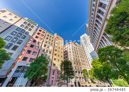 日本の東京都市景観 散策に人気のイタリア街の街並みを望む・汐留=東京都港区東新橋