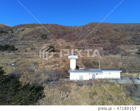 冬の北海道函館市汐首岬の汐首灯台のある風景を撮影