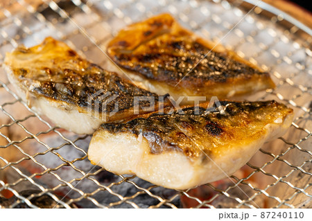 備長炭で焼く塩サバ