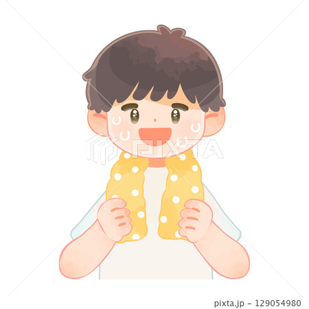 たくさん汗をかいている子供 男の子