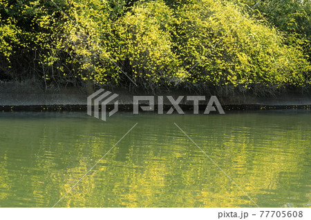 川沿いに咲くウンナンオウバイ 城西公園 (高知県 高知市)