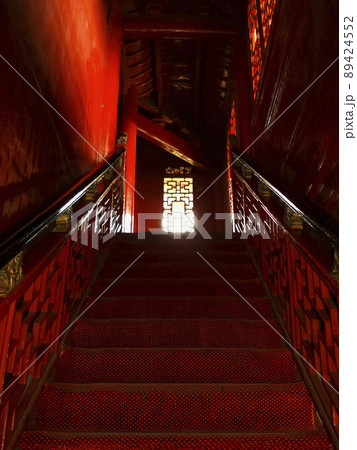中国湖南省 岳陽 岳陽楼 建物内の階段 / Yueyang Tower, Hunan, China