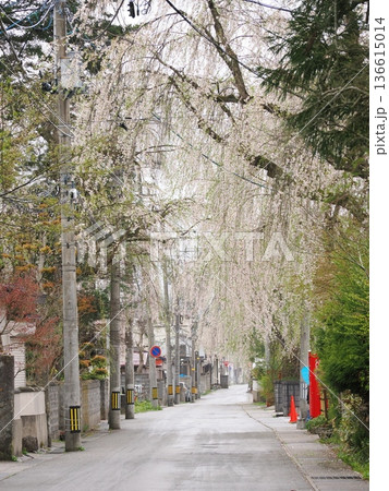 角館・武家屋敷通り、満開の桜が彩る春の情緒ある街並み(無人)