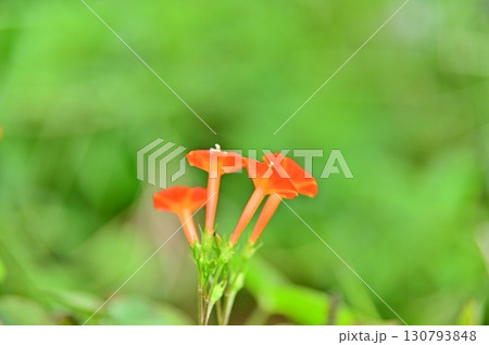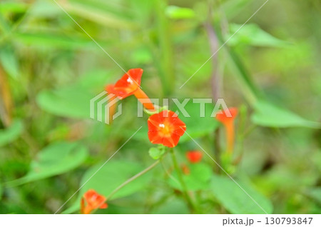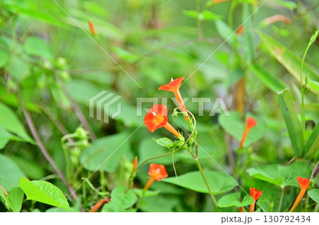 ラッパのような形をした小さな朱赤色の花を咲かせるマルバルコウソウ