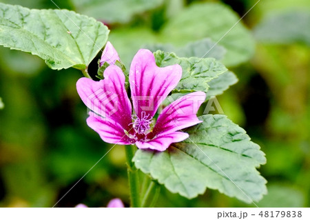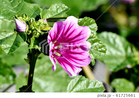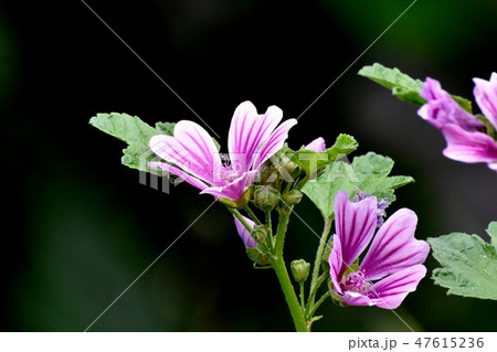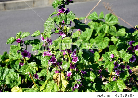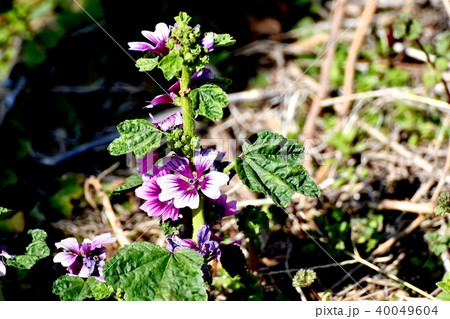 三鷹中原に咲く紫色と白のゼニアオイの花