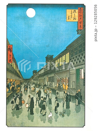 歌川広重 名所江戸百景(秋の部)#91 猿わか町 よるの景
