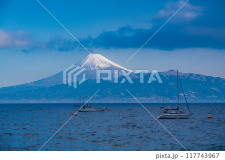 「静岡県」富士山ビュースポット西浦江梨から駿河湾越しに眺める富士山
