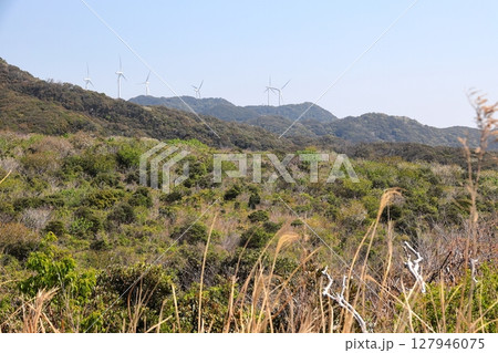 伊豆半島・南伊豆・奥石廊、池の原と呼ばれる丘の上にあるユウスゲ公園の遊歩道・静岡県南伊豆町
