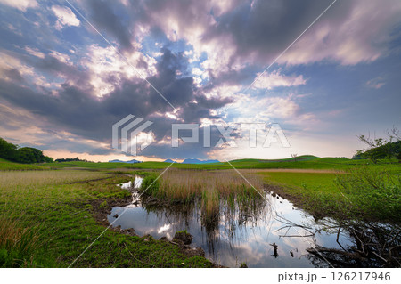 山焼きから丁度3カ月一面すすきの新緑に覆われた曽爾高原の夕景 日没から美しい夕焼け空まで⑪