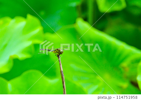 池の枯れ枝にとまる コシアキトンボ