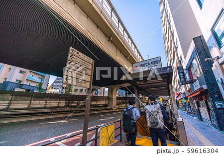 日本の東京都市景観 東急電鉄 池尻大橋駅出入口などを望む