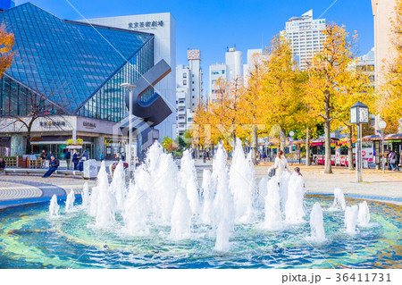 東京 豊島区 池袋西口の都市風景 池袋西口公園