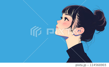高校の制服を着た女性が希望を持って上を向いている横顔