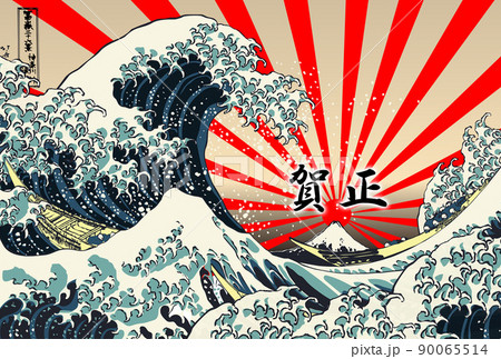北斎・富嶽三十六景・神奈川沖浪裏/年賀状素材・賀正ー日の出サンライズ
