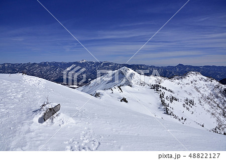 冬の群馬県利根郡 武尊山の山頂から北西側(谷川岳,幕掛山,宝台樹山など)の眺望