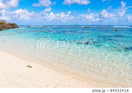 南の島の透き通った海と青空(鹿児島県 奄美群島 沖永良部島)