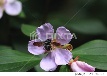 生き物 昆虫 オキナワクマバチ、初夏の山原。メスがノボタンの花で蜜集め