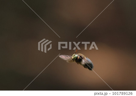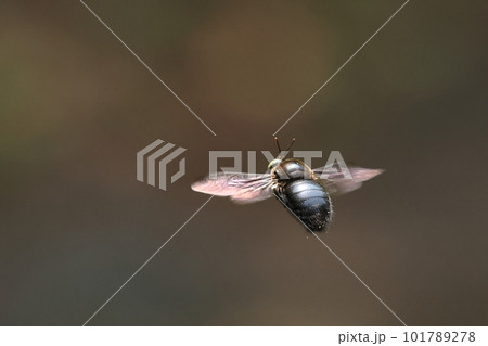 生き物 昆虫 オキナワクマバチ、四月の山原。メスを求め、飛んで縄張りを主張するオス