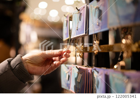 ネックレスを選ぶ女性の手