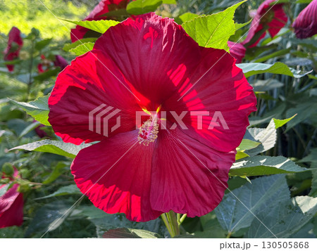 Hibiscus moscheutos swamp rose mallow red flower.
