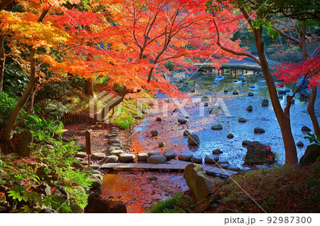 紅葉が美しい秋の小石川後楽園(大堰川)
