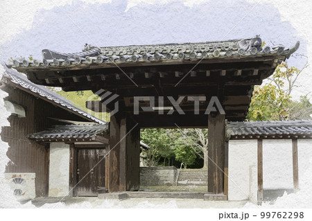 水彩画風 河内源氏発祥の地 通法寺跡 山門 大阪府羽曳野市