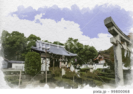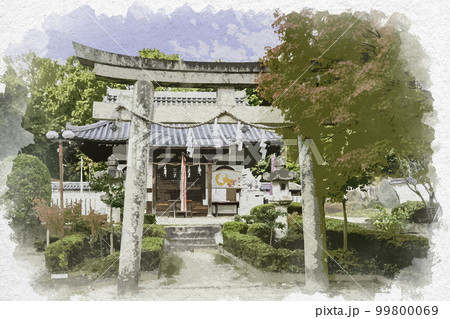 水彩画風 壺井八幡宮 壺井権現社 大阪府羽曳野市
