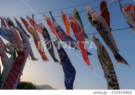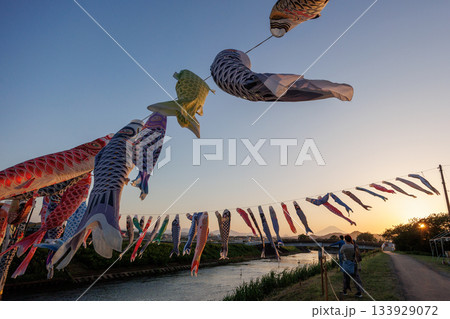 鈴川こいのぼりと夕焼け(神奈川県平塚市)