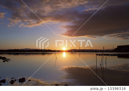 湖の日の出