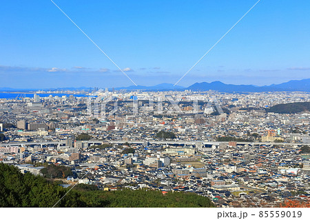 【福岡県】油山片江展望台から見た快晴の福岡市
