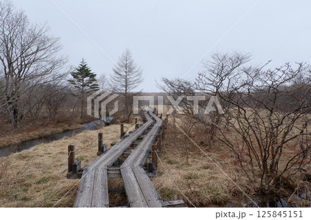 栃木県那須塩原市沼ッ原湿原木道のある風景