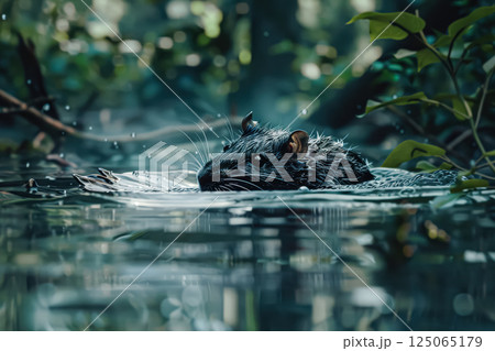 Close-Up of a Curious Duck-Billed Platypus in a Natural Habitat Surrounded by Greenery