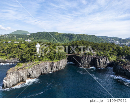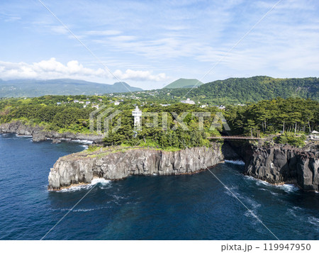 伊豆大島の南端にある竜王埼灯台から筆島までの海岸線(東京都大島町)