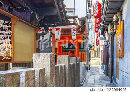 大阪千日前 朝の法善寺境内 お初天神(岡山最上稲荷) 夏